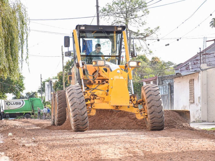Con varios frentes de obras simultáneos, avanza el enripiado en los barrios de la ciudad