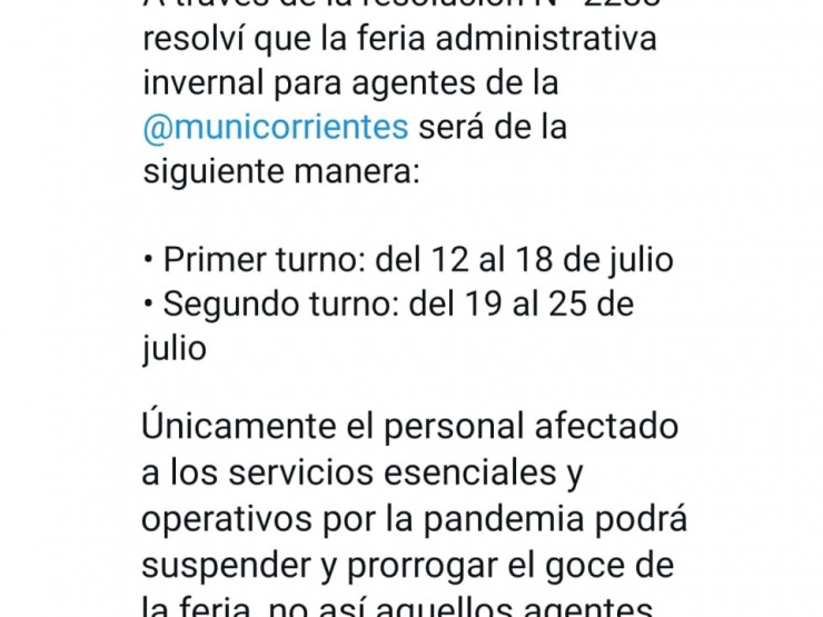 Según anunció el intendente Eduardo Tassano, los agentes de planta, contrato y los trabajadores Neike que ya cuenten con sus tarjetas de débito del Banco de Corrientes cobrarán el jueves, mientras...