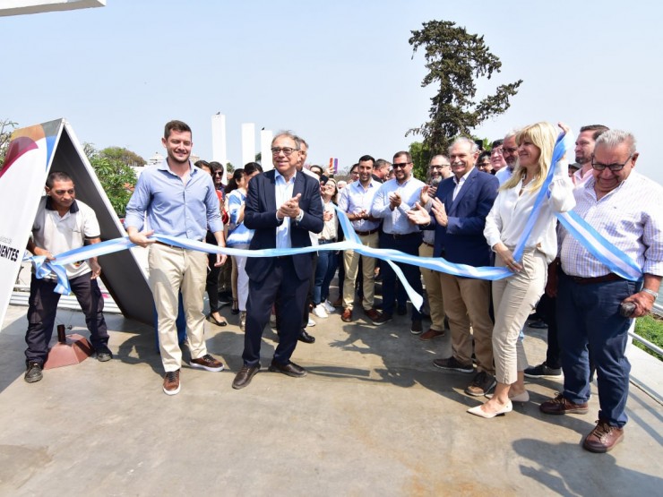 El intendente encabezó el acto de inauguración del patio gastronómico que funciona en la terraza del flamante mercado del puerto, estrenado en marzo.