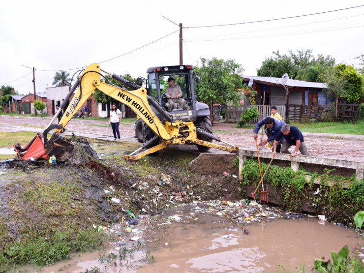 Lluvias: cuadrillas municipales realizaron intensos trabajos limpiando canales y sumideros