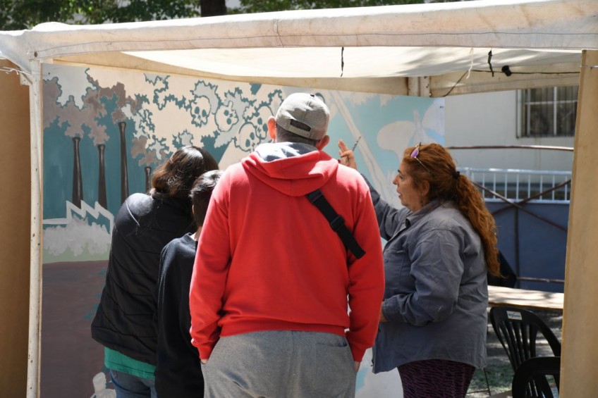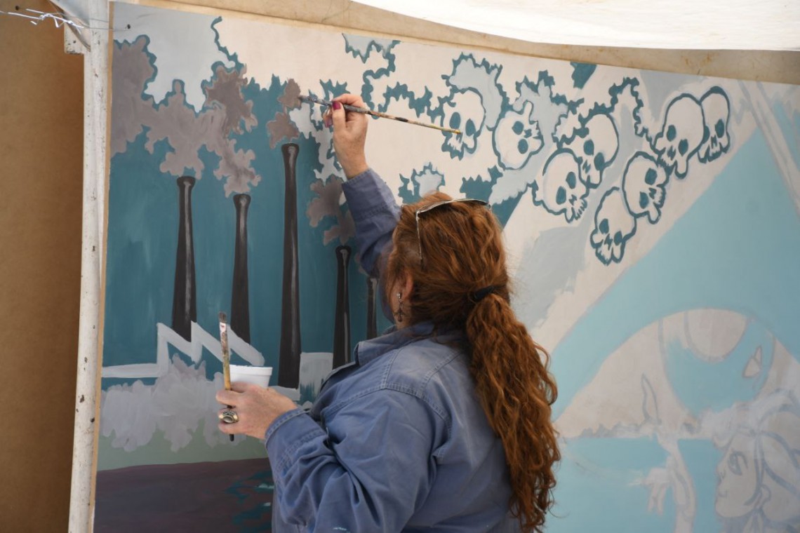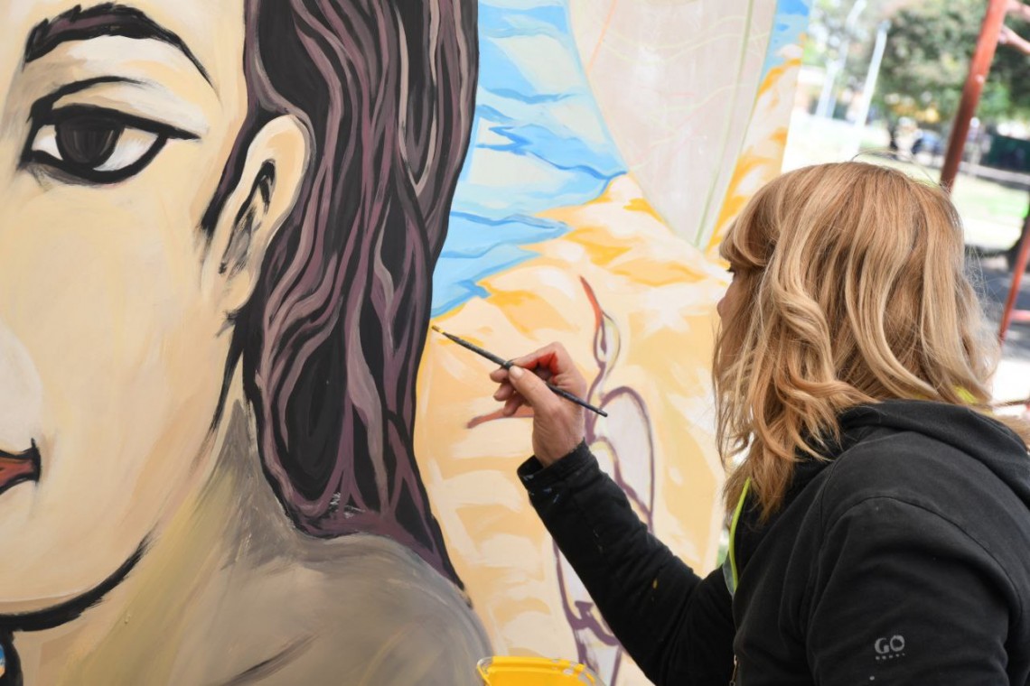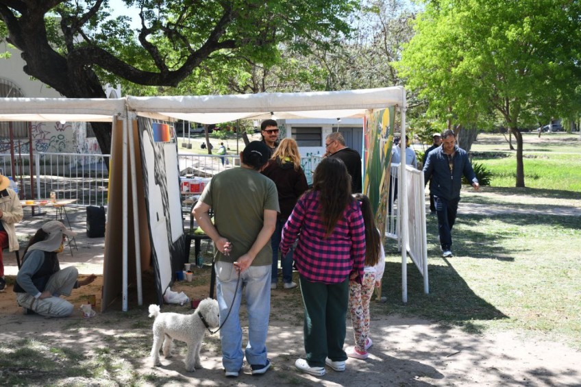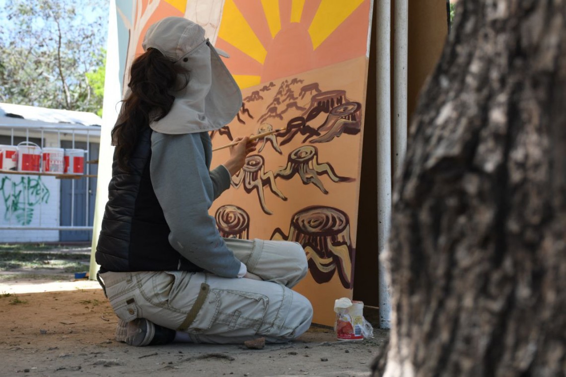 En el mencionado espacio público, los artistas trabajan en el horario de 9 a 18, en placas de MDF de 2,75mts por 1,85mts, las que luego serán obsequiadas a instituciones educativas de la ciudad.