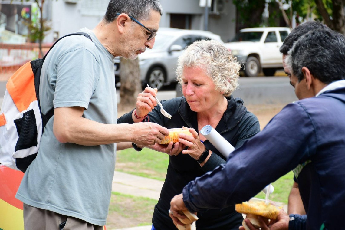 La celebración también se vivió en el Centro Cultural Adolfo Mors, donde los vecinos compartieron un almuerzo comunitario con platos típicos, además de música y danza.