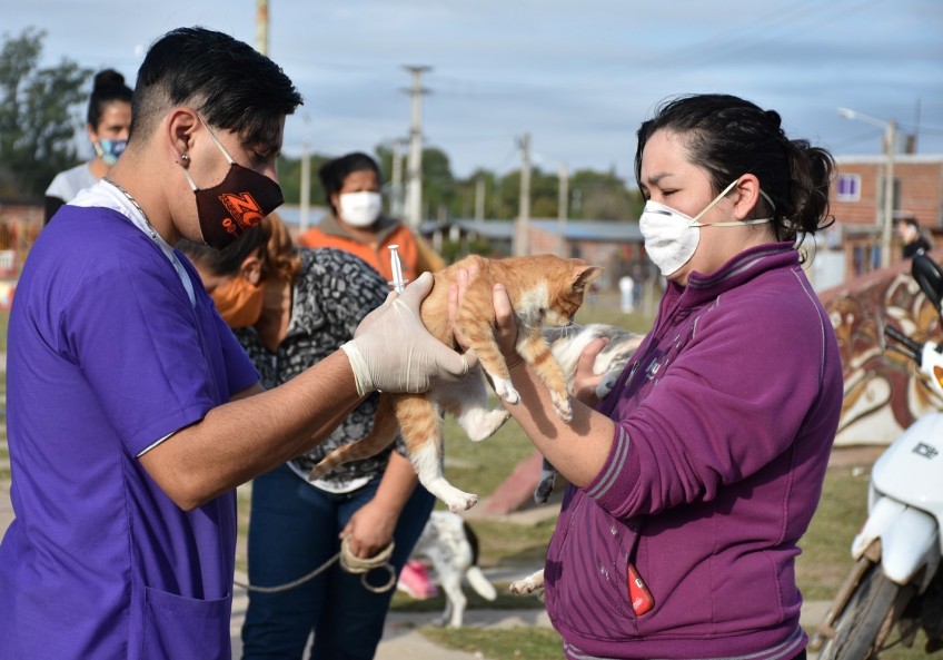 "Este operativo viene bien para toda la población porque los costos veterinarios son muy caros, más en esta situación", dijo Yanina, quien reside en la zona y acercó a sus dos gatos para que sean vacunados.