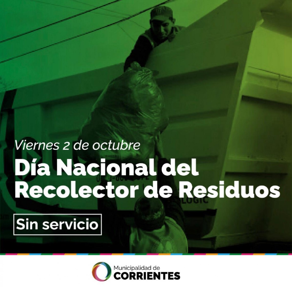 Con motivo de celebrarse en todo el país el Día Nacional del Recolector de Residuos, este viernes no habrá el servicio de recolección domiciliaria dado que los trabajadores de este sector que dependen de la Secretaría de Ambiente y Desarrollo Sustentable no realizan tareas ese día. Se solicita a los vecinos colaborar y no sacar la basura a la calle durante toda la jornada.