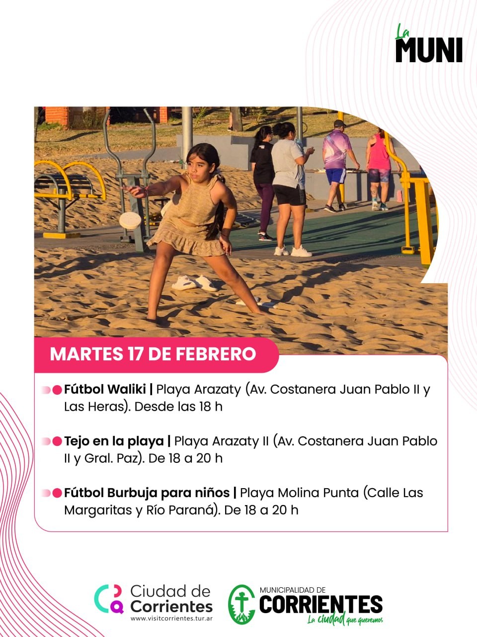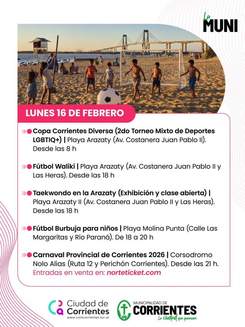 Del 13 al 17 de febrero, la Municipalidad de la ciudad de Corrientes, ofrece una amplia agenda con propuestas deportivas, culturales y recreativas.