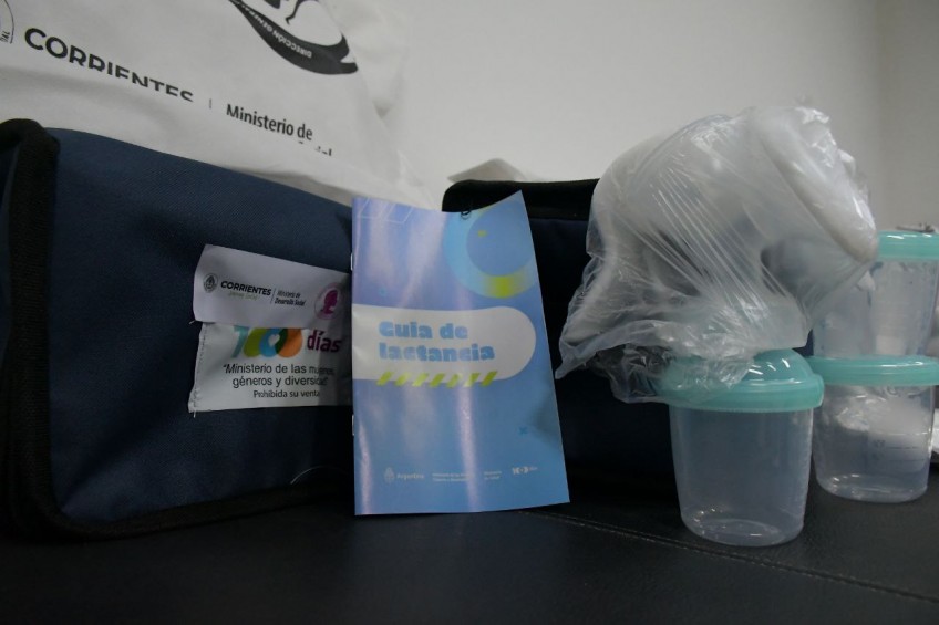 Cada kit de lactancia consta de un conjunto de elementos de apoyo para la promoción y protección de la lactancia exclusiva. Contiene un bolso térmico, un sacaleches manual, tres vasos recolectores para almacenamiento de leche humana, una toalla de manos, dos protectores mamarios reutilizables y un manual de lactancia.