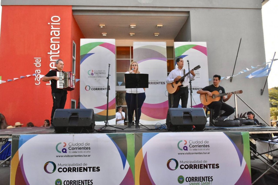 En la plaza de la Tradición, varias familias se acercaron a disfrutar de las muestras de talleres de canto, danza y dibujo que vecinos realizan en la Casa del Bicentenario, organizado por la Municipalidad de Corrientes. Además, disfrutaron de la actuación de Rodrigo Alves Da Silva, Macarena López Leyes y Brian Acevedo y su conjunto. No faltó el tradicional chocolate para los presentes.