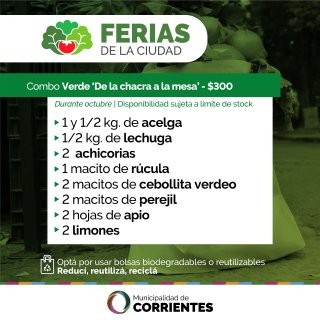 La Municipalidad de Corrientes acercará las Ferias de la Ciudad a diferentes plazas y paseos para que los vecinos puedan acceder a productos de calidad y a buen precio, donde estará también disponible el combo saludable "De la chacra a la mesa".