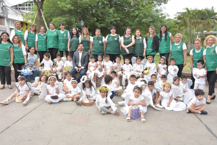 En una actividad organizada por la Municipalidad de Corrientes, la antigua tradición cultural de Ángeles Somos fue recreada este viernes en la peatonal Junín por un grupo de niños de las salas de 3 y 4 años de los Centros de Desarrollo Infantil (CDI) municipales I y XII de los barrios Popular y Virgen de Guadalupe.