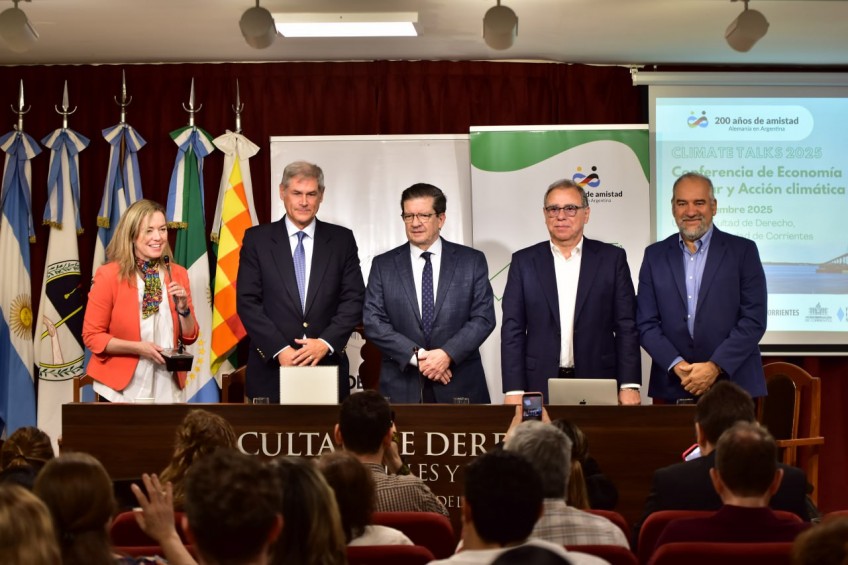 Durante la mañana, Tassano encabezó, junto al vicegobernador, Pedro Braillard Poccard, y el intendente electo Claudio Polich, el acto de apertura de la “Conferencia de Economía Circular y Acción Climática: Intercambio de Experiencias entre Argentina y Alemania”, que se realiza en la Facultad de Derecho y Ciencias Sociales y Políticas de la Universidad Nacional del Nordeste (Unne), en el histórico edificio de Salta 459.
