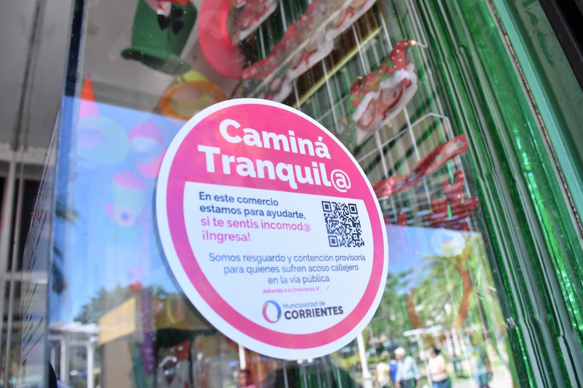 “Estamos acompañando a los concejales con este programa Caminá Tranquila, una iniciativa con la que buscamos facilitar información y recursos a las mujeres que, en este caso, transitan por la peatonal Junín, y nuestro nexo para ello son los propios comercios de la zona”, explicó Tassano luego de un breve acto en el que se colocó la señalética del programa en un local comercial ubicado en inmediaciones de la plaza Vera.