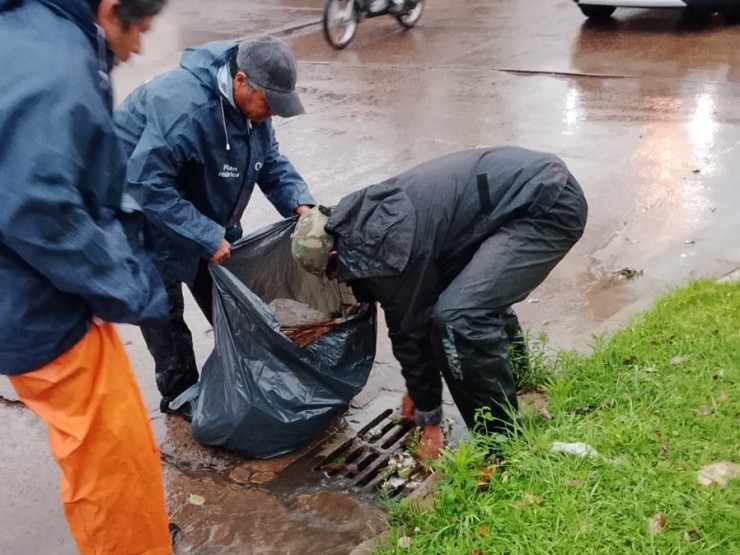 Lluvia: tras la caída de 62 mm, cuadrillas municipales limpiaron canales y sumideros