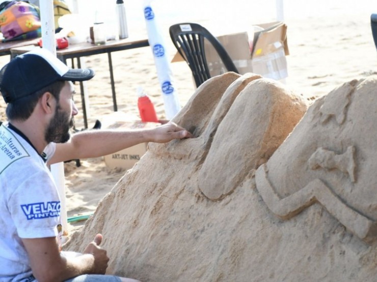 Escultores en arena pusieron manos a la obra en la playa Arazaty