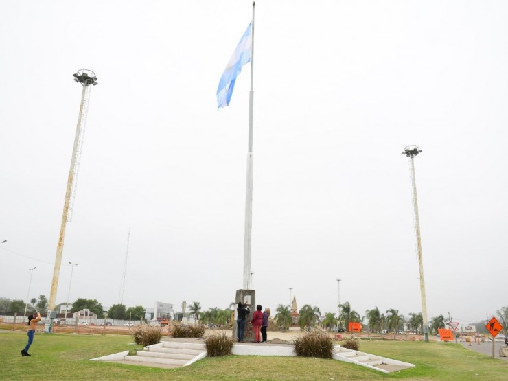 La Municipalidad renovó la bandera en el mástil de acceso a la Ciudad