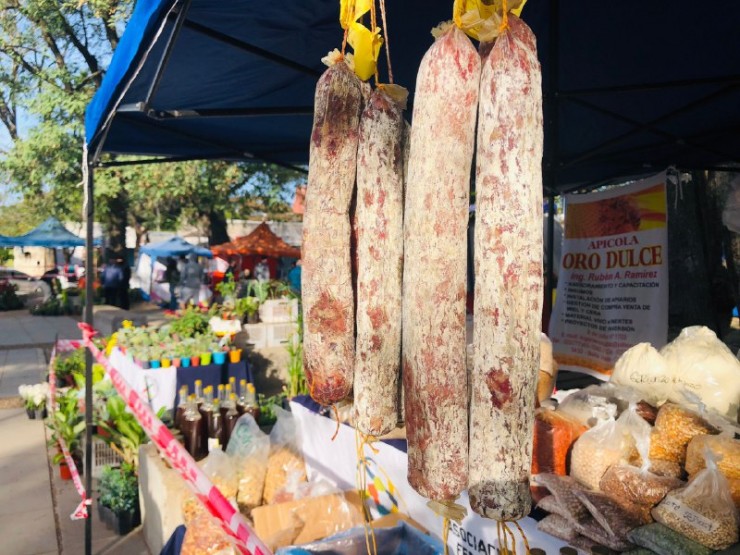 En el espacio público y con todas las medidas de prevención sanitaria, los expositores comercializaron una productos manufacturados en cuero, madera, tejido, entre otros, además de dulces...