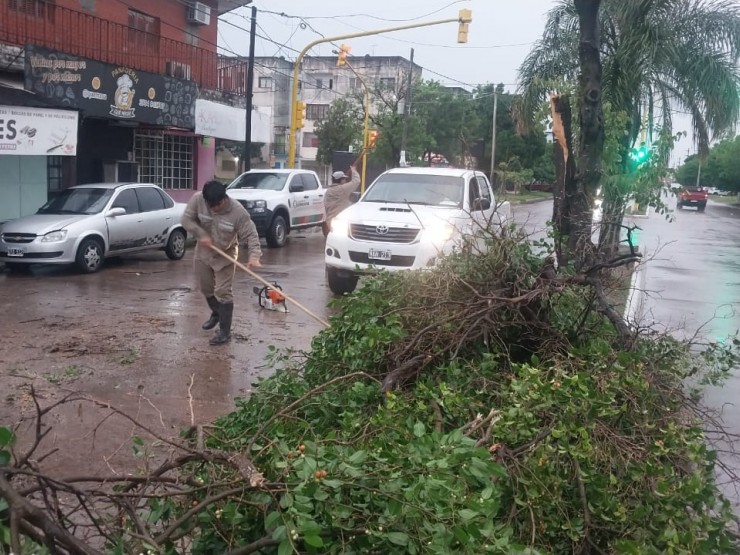 La tormenta con lluvia afectó más a la zona Sur de la ciudad, donde por la acción del viento, cayó un árbol y dos postes de servicios.