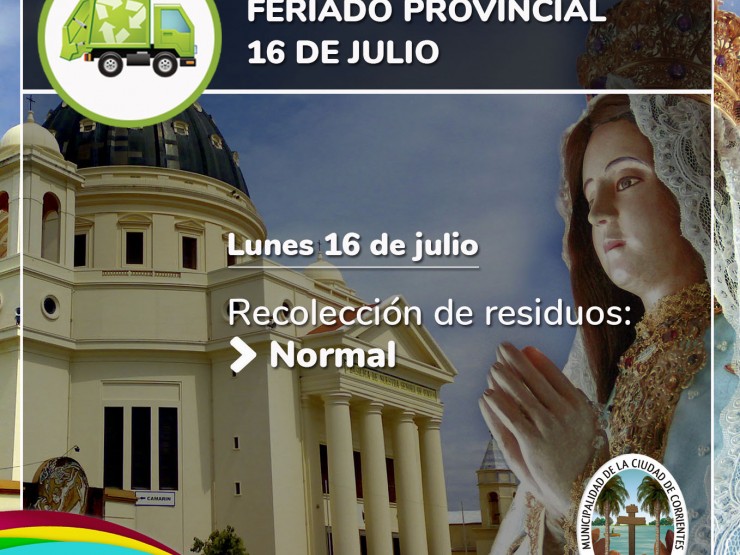 El servicio se cumplirá normalmente el 16 de julio, pese al asueto provincial por el Día de la coronación pontificia de la Virgen de Itatí.
